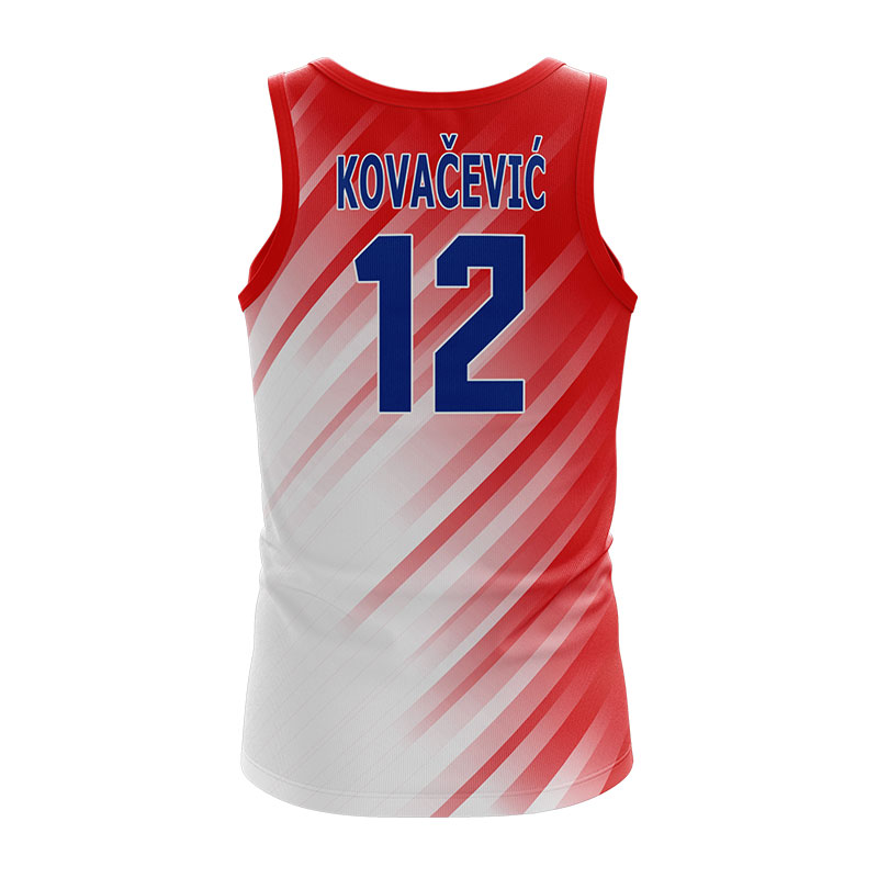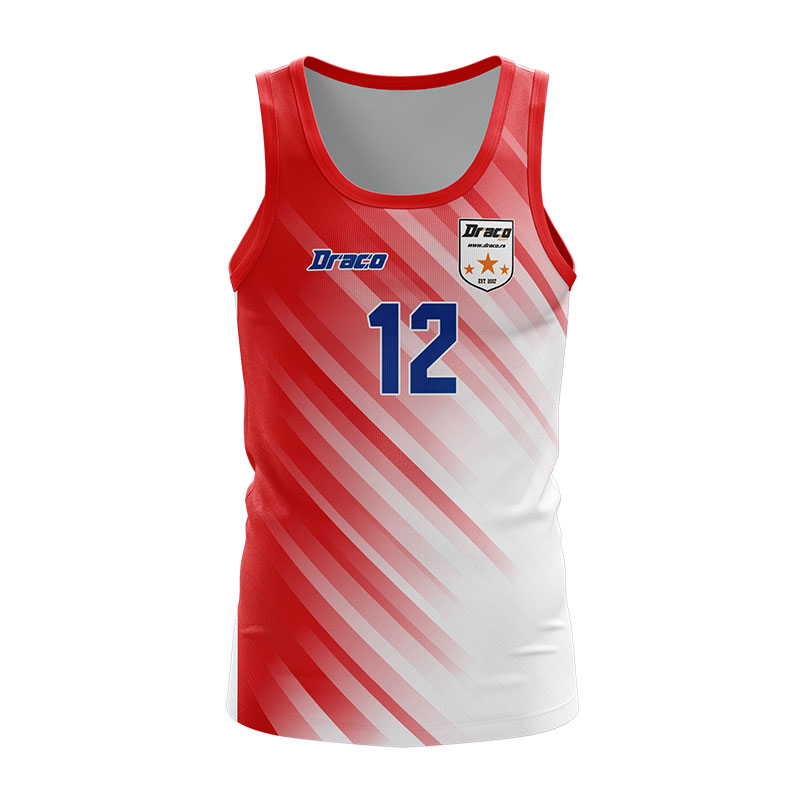 Košarkaški dres u crveno beloj varijanti boja.